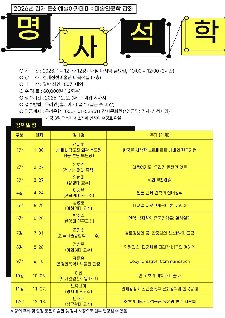 2026 명사석학 미술인문학 강좌