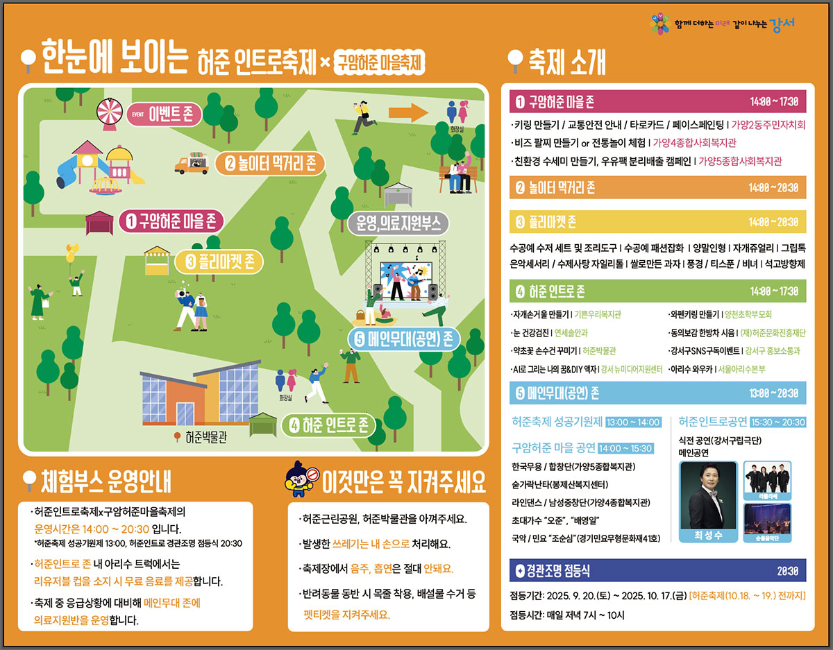 - 허준마을 공연(14:00~15:30, 허준근린공원 무대) : 사물놀이, 한국무용, 합창, 숟가락난타, 라인댄스 등