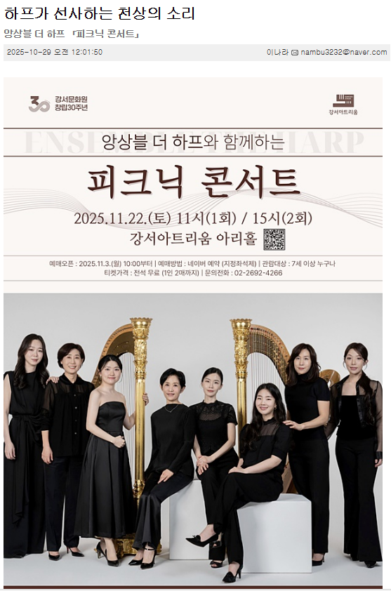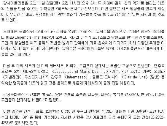 강서아트리움​ 하프가 선사하는 천상의 소리 앙상블 더 하프 <피크닉 콘서트>