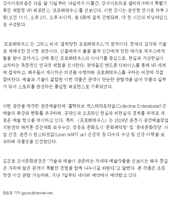 강서아트리움​ 체험형 VR 퍼포먼스 '프로메테우스' 전시 공연