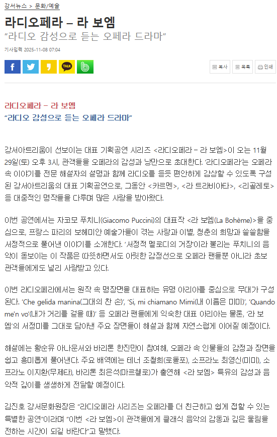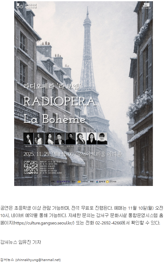 강서아트리움​ 라디오페라 <라 보엠> "라디오 감성으로 듣는 오페라 드라마"