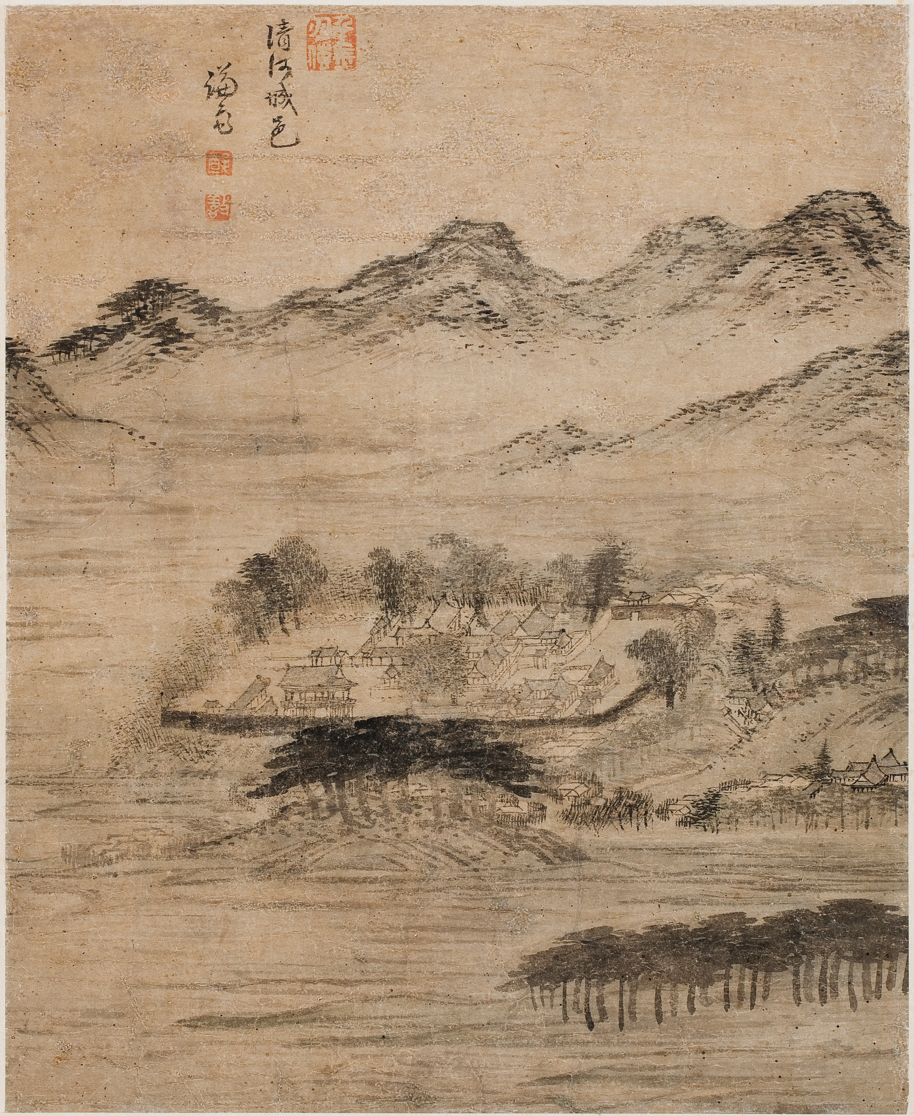 정선, <청하성읍>, 18세기, 종이에 먹, 옅은 채색, 32.7×25.9cm, 겸재정선미술관 소장.